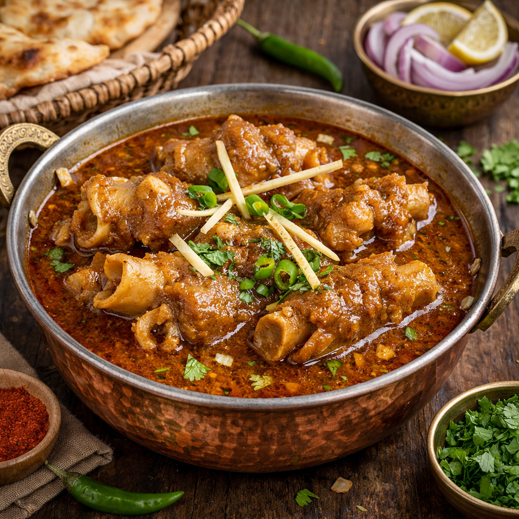 Authentic Lahori-style Baare Paaye, slow-cooked for hours to create a rich, flavorful, and thick curry. Prepared with traditional spices for a true homemade taste. Perfect for breakfast, weekend meals, or special gatherings. Best served hot with naan or kulcha.